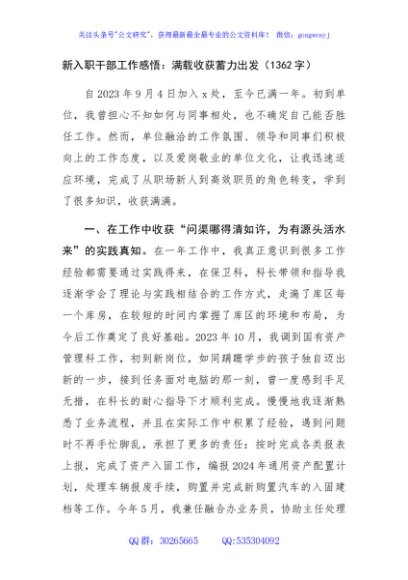 / 新入职干部工作感悟:满载收获蓄力出发(1362字)