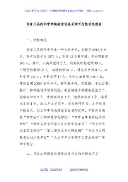 / 张家川县阿阳中学实验室设备采购可行性研究报告