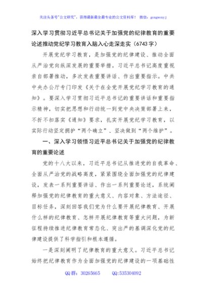 / 深入学习贯彻习近平总书记关于加强党的纪律教育的重要论述推动党纪学习教育入脑入心走深走实(6743字)