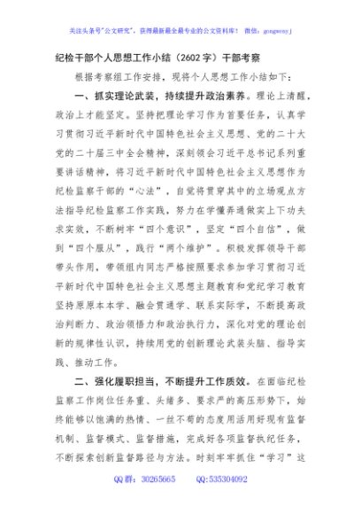 纪检干部个人思想工作小结(2602字)干部考察