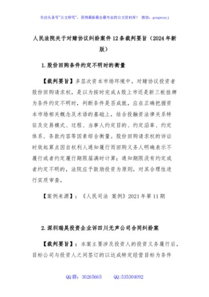 / 人民法院关于对赌协议纠纷案件12条裁判要旨(2024年新版)