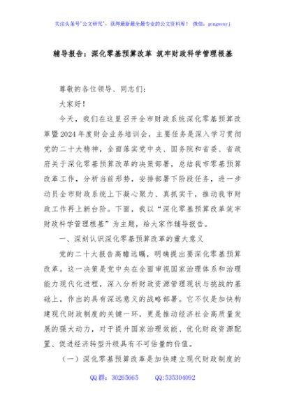 辅导报告:深化零基预算改革 筑牢财政科学管理根基