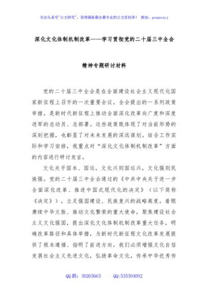 / 深化文化体制机制改革——学习贯彻党的二十届三中全会精神专题研讨材料