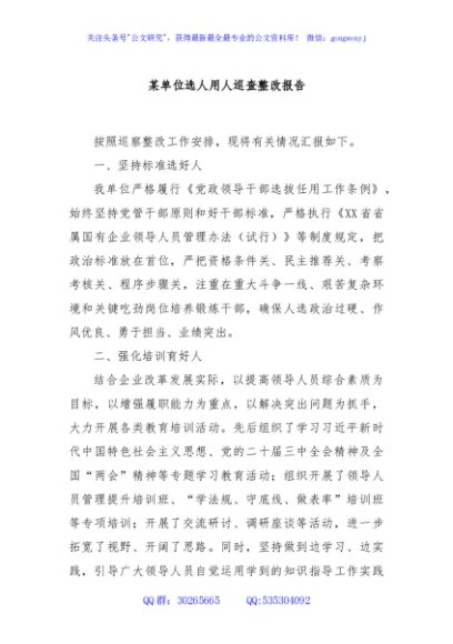 / 某单位选人用人巡查整改报告