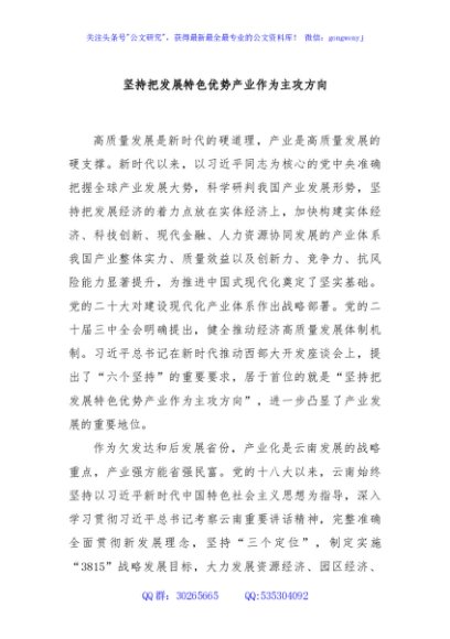 / 坚持把发展特色优势产业作为主攻方向