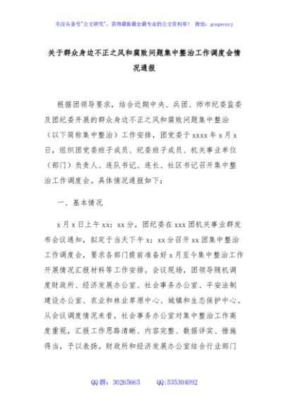 / 关于群众身边不正之风和腐败问题集中整治工作调度会情况通报