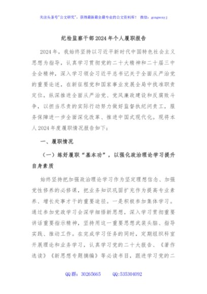 / 纪检监察干部2024年个人履职报告