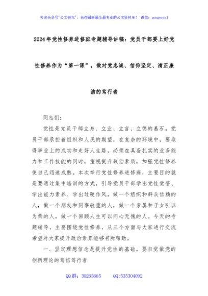 / 2024年党性修养进修班专题辅导讲稿:党员干部要上好党性修养作为“第一课”,做对党忠诚、信仰坚定、清正廉洁的笃行者