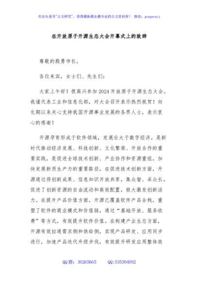 / 在开放原子开源生态大会开幕式上的致辞