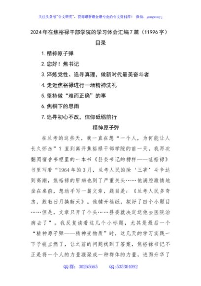 / 2024年在焦裕禄干部学院的学习体会汇编7篇(11996字)