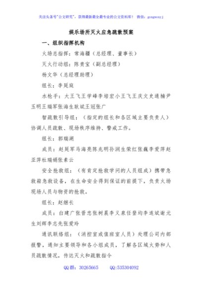 娱乐场所灭火应急疏散预案