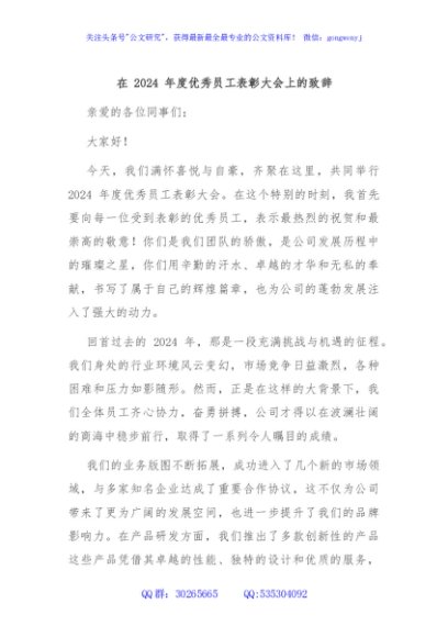 / 在 2024 年度优秀员工表彰大会上的致辞
