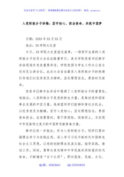 / 入党积极分子讲稿:坚守初心,担当使命,共筑中国梦