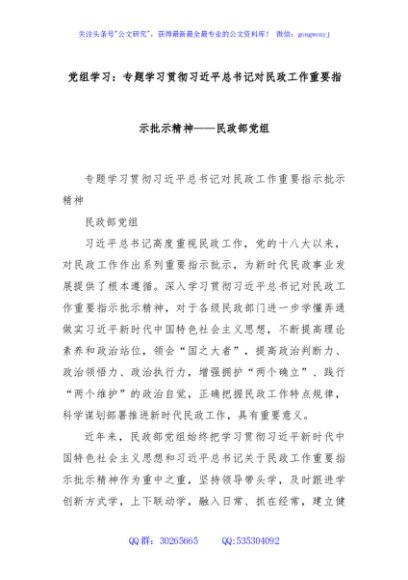 / 党组学习:专题学习贯彻习近平总书记对民政工作重要指示批示精神——民政部党组