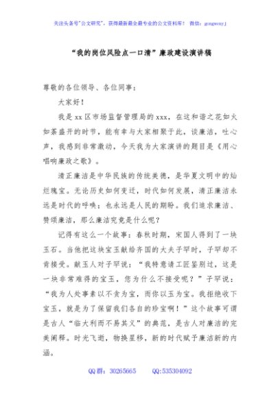 / “我的岗位风险点一口清”廉政建设演讲稿