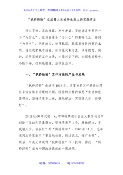 / “枫桥经验”在戒毒人员戒治生态上的实践启示