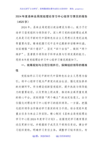/ 2024年度县林业局党组理论学习中心组学习情况的报告(4525字)