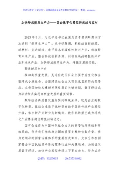 加快形成新质生产力——国企数字化转型的挑战与应对