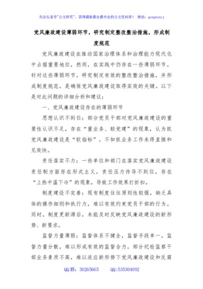 / 党风廉政建设薄弱环节,研究制定整改整治措施,形成制度规范