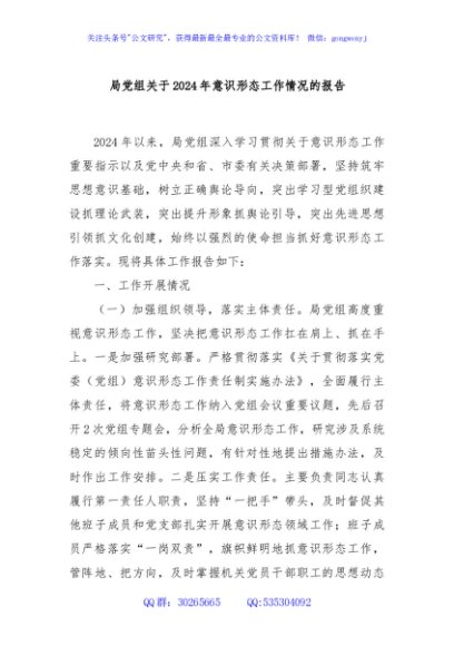/ 局党组关于2024年意识形态工作情况的报告