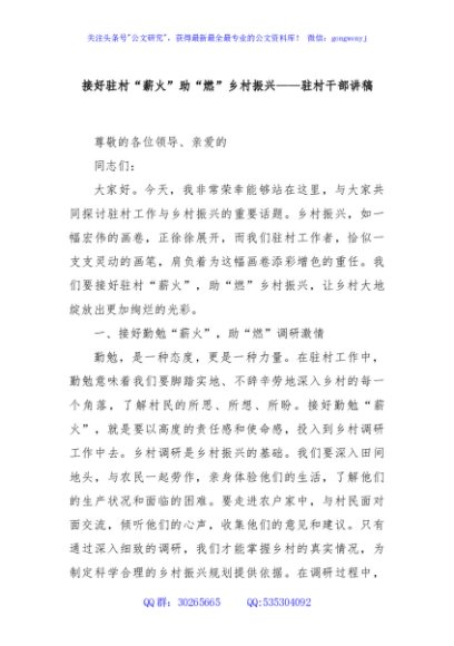 / 接好驻村“薪火”助“燃”乡村振兴——驻村干部讲稿