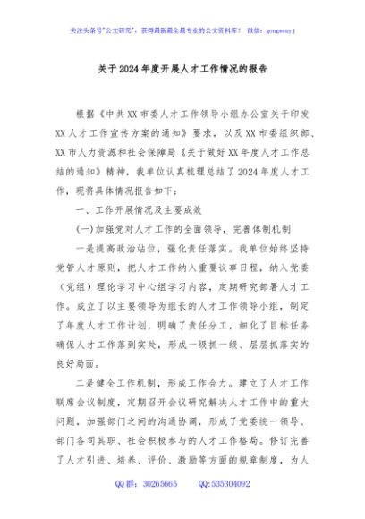 / 关于2024年度开展人才工作情况的报告