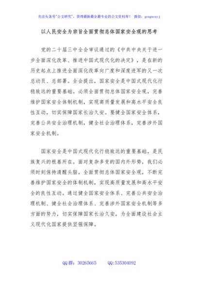 / 以人民安全为宗旨全面贯彻总体国家安全观的思考