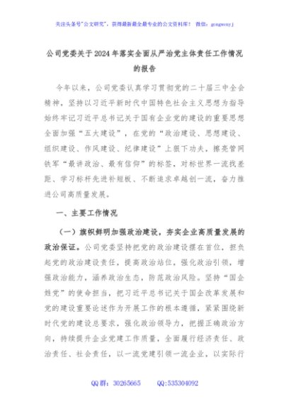 / 公司党委关于2024年落实全面从严治党主体责任工作情况的报告