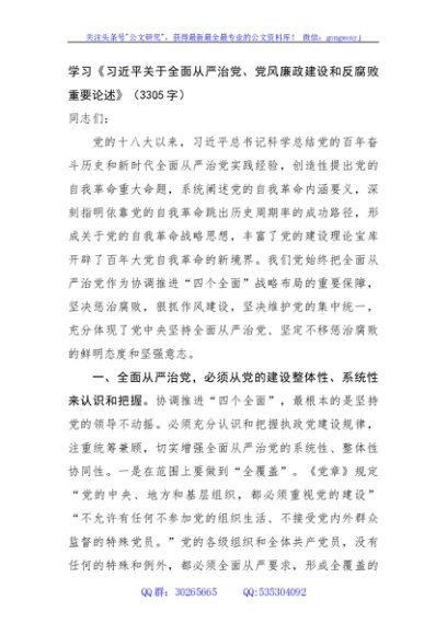 / 学习《习近平关于全面从严治党、党风廉政建设和反腐败重要论述》(3305字)
