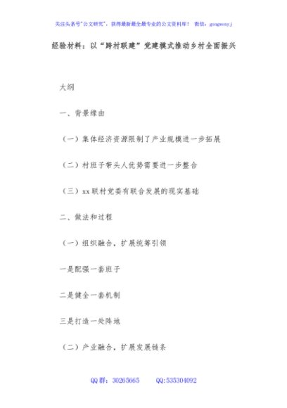 / 经验材料:以“跨村联建”党建模式推动乡村全面振兴