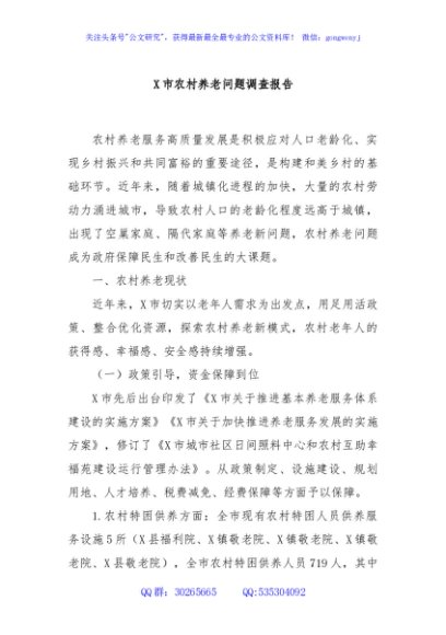/ X市农村养老问题调查报告