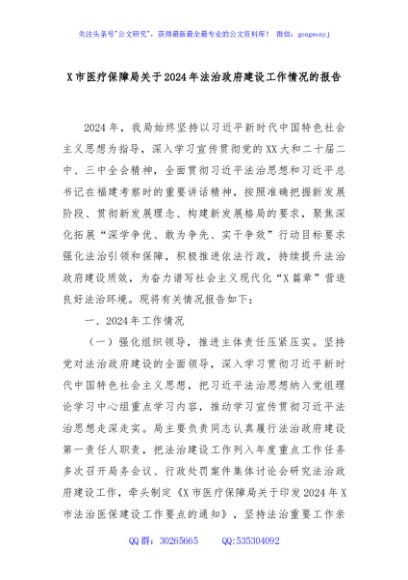 / X市医疗保障局关于2024年法治政府建设工作情况的报告