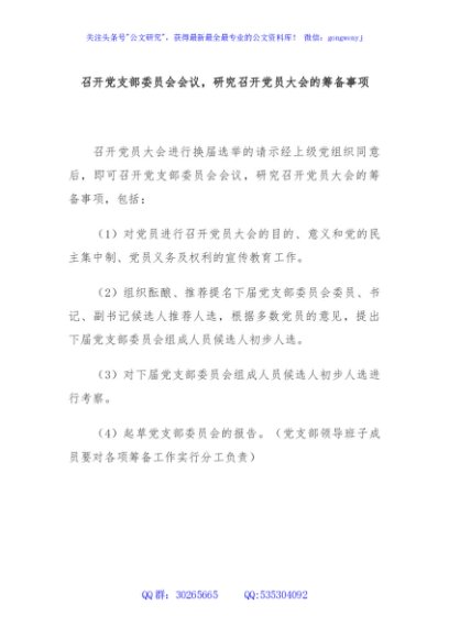 召开党支部委员会会议,研究召开党员大会的筹备事项