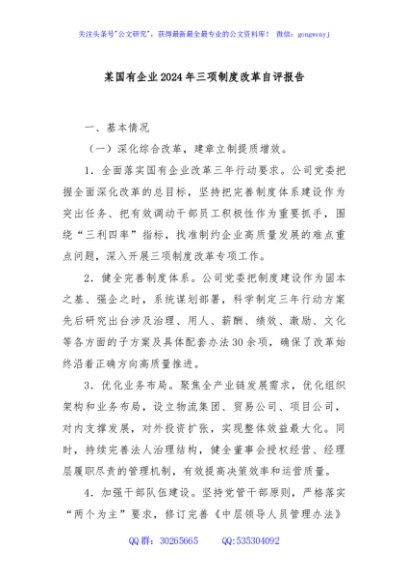 / 某国有企业2024年三项制度改革自评报告