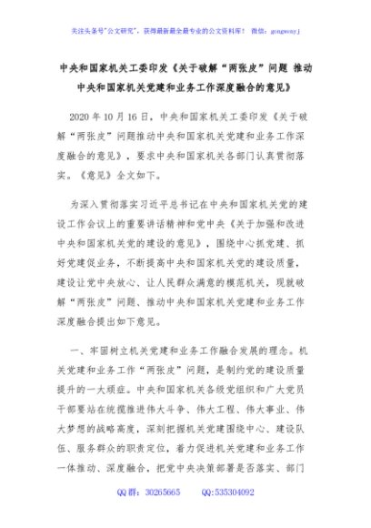 / 中央和国家机关工委印发《关于破解“两张皮”问题 推动中央和国家机关党建和业务工作深度融合的意见》