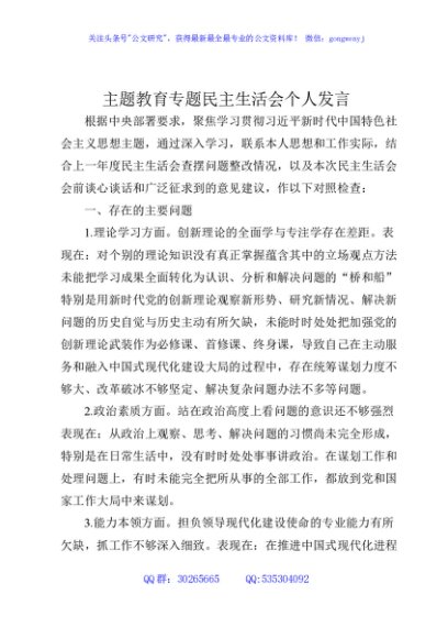 / 国企主题教育专题民主生活会个人对照检查发言3400字