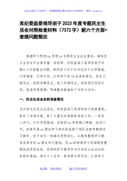 / (纪委班子)2023年度专题民主生活会对照检查材料(践行宗旨等6个方面+上年度整改)