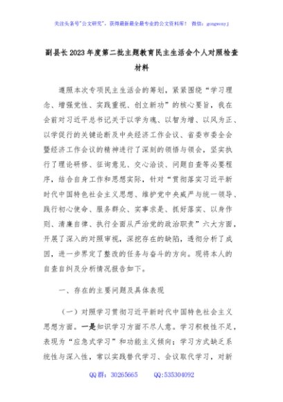/ 副县长2023年度第二批主题教育民主生活会个人对照检查材料