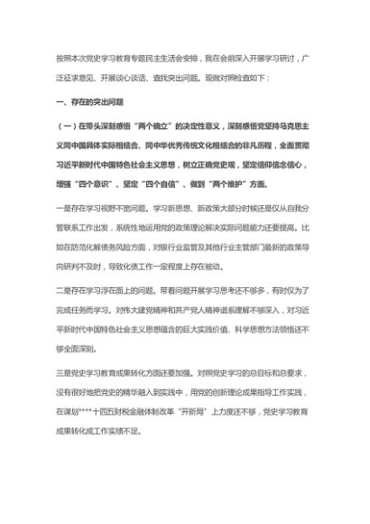 区委副书记党史学习教育专题民主生活会五个方面对照检查材料