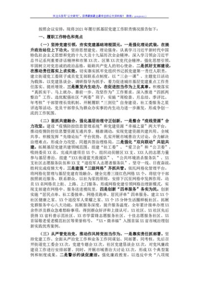 / 街道党工委书记2021年度基层党建工作述职报告