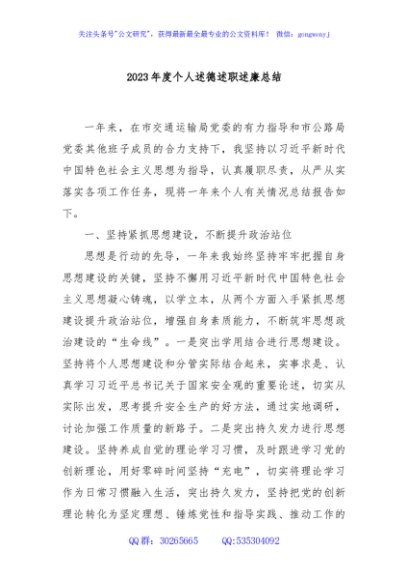 / 2023年度个人述德述职述廉总结