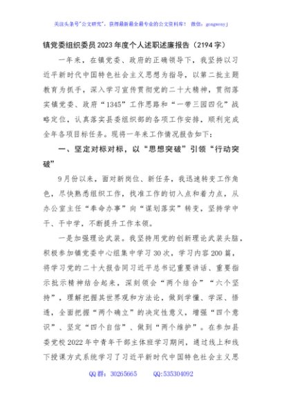/ 镇党委组织委员2023年度个人述职述廉报告