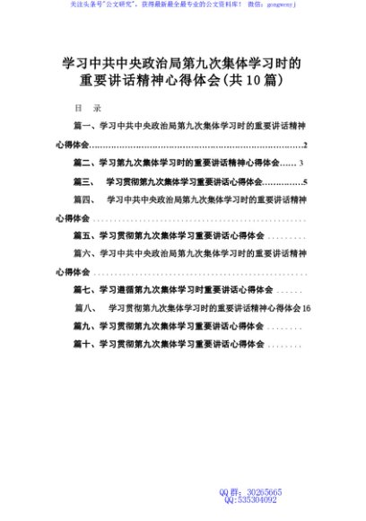 学习中共中央政治局第九次集体学习时的重要讲话精神心得体会10篇(最新精选)