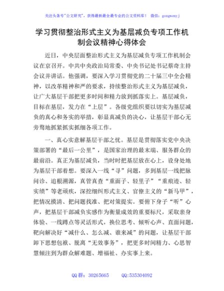 / 学习贯彻整治形式主义为基层减负专项工作机制会议精神心得体会