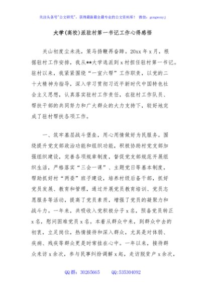 / 大学(高校)派驻村第一书记工作心得感悟