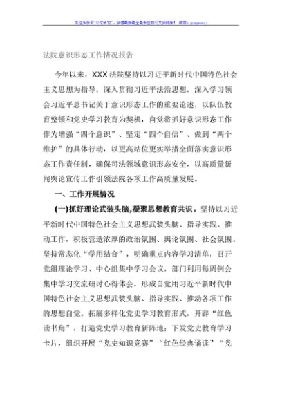/ 法院意识形态工作情况报告