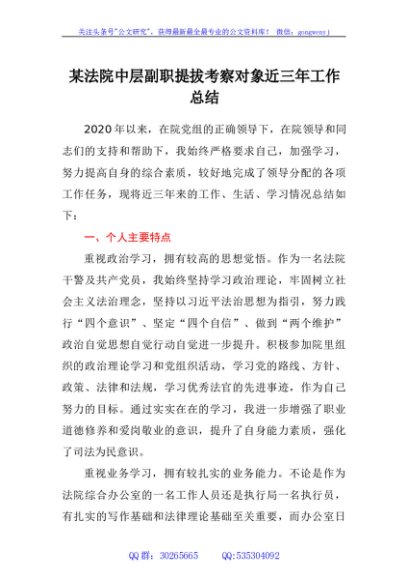 / 某法院中层副职提拔考察对象近三年工作总结