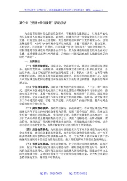 / 某企业党建+保供服务活动总结