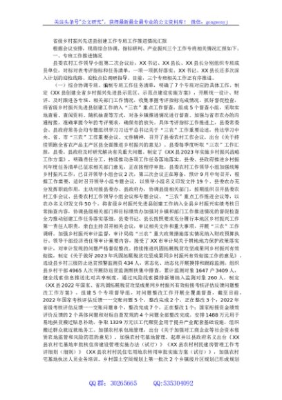 省级乡村振兴先进县创建工作专班工作推进情况汇报