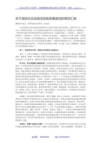 / 关于高校社会实践活动高质量建设的情况汇报